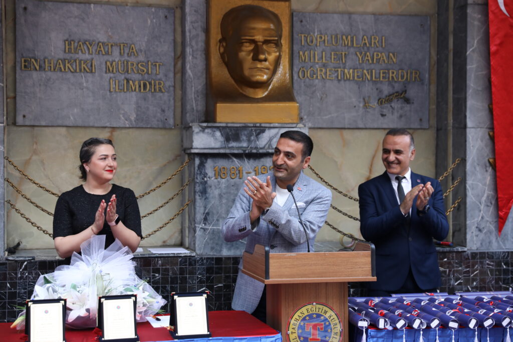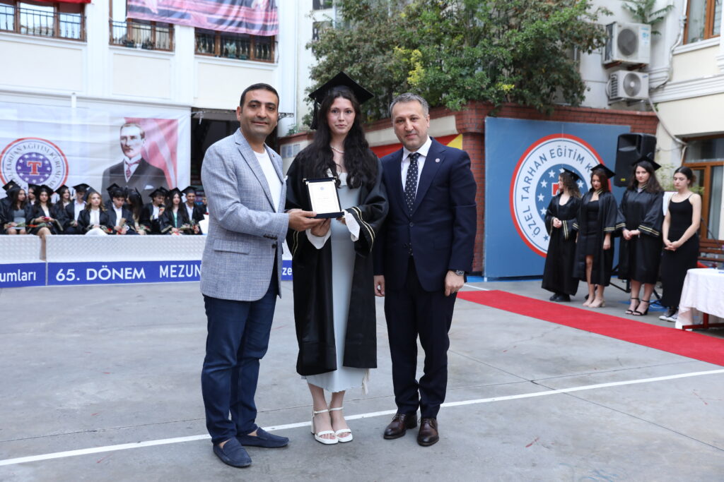2023-2024 Eğitim Öğretim Yılı Özel Tarhan Kolejinde gerçekleşen “Mezuniyet Töreni” Beyoğlu Belediye Başkanı İnan GÜNEY’in katılımıyla “65. Dönem” mezunlarımızın coşkusuna sahne oldu. Mezuniyet törenimizde mutluluk ve hüzün bir arada yaşandı. 65 yıllık eğitim hayatını geride bırakan okulumuzun çatısı altında lise hayatını tamamlayan mezunlarımız, öğretmenlerini ve ailelerini gururlandırırken yeni umutlarla aydınlık bir geleceğe adım attılar.