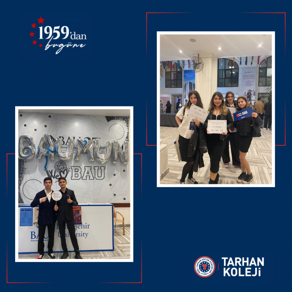 Tarhan MUN Kulübü öğrencilerinden Ali Akyol, Aras Kavak, Ayşenaz Erkaynak, Defne Kümbüloğlu, Defne Sim Gökyıldırım, Deniz Ali Acar, Elif Vera Ateşalan, İmge Belgin ve Volkan Can Ülker, İngilizce öğretmenleri Z. Rüveyda Bekdemir, Barış Akın ve Kınar Balcı liderliğinde 25-27 Ekim’de Bahçeşehir Üniversitesi’nin düzenlediği BAUMUN’a katıldılar.