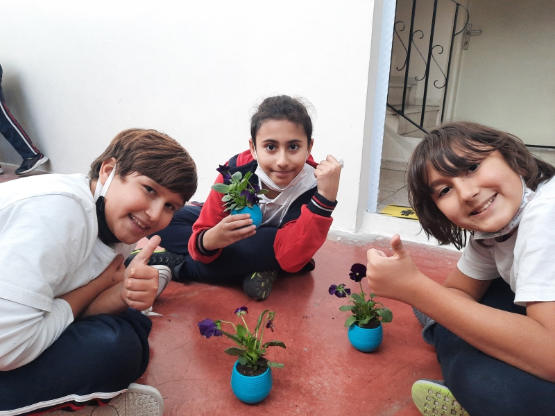 3. ve 4.sınıf öğrencilerimiz Dünya Engelliler Günü’nde anlamlı bir farkındalık çalışması gerçekleştirdiler. Öğrencilerimiz önce toprağa dokundular ve rengarenk saksıları çiçeklerle doldurdular. Ekilen çiçekleri satarak elde ettikleri gelirlere, ortaokul okul başkanımız Yağız YILMAZ, yardımcısı Ali Efe KATİPOĞLU ve yazman Damla Melis ŞAHİN’in destek kampanyasında sattıkları anahtarlıklardan elde edilen gelirler eklendi. Tüm bu çalışmaların sonucunda öğrencilerimiz Altı Nokta Körler Vakfı’na bağışta bulundular.