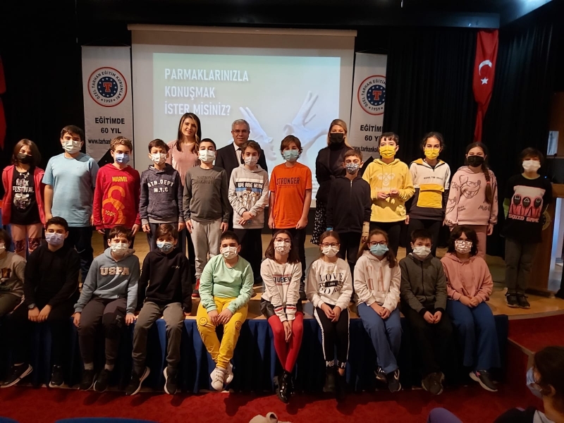İşitme Engelliler Federasyonu başkanı Muammer Ay’ın ve proje koordinatörü Elif hanımın “İşitme Engellilerin Dünyaları ve İşaret Dilinin Önemi” sunumuyla ortaokul öğrencilerimiz, Beyoğlu Halk Eğitim Merkezinden Burak Kalafat’ın sınıflarda gerçekleştirdiği “İşaret Dilinin Önemi” sunumuyla da ilkokul öğrencilerimiz engellerin aşılması hususunda erken yaşta farkındalık kazandılar. Engellerin bedende değil ancak yürekte olduğunu, engel değil destek olunması gerektiğini bu anlamlı çalışmalarıyla vurgulayan öğrencilerimize ve sunumlarıyla destek olan konuşmacılarımıza duyarlı davranışlarından dolayı teşekkür ederiz.
