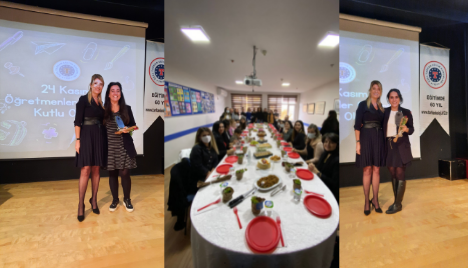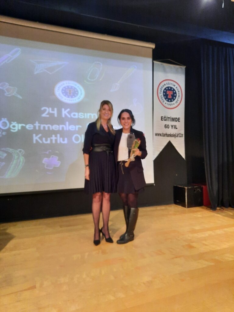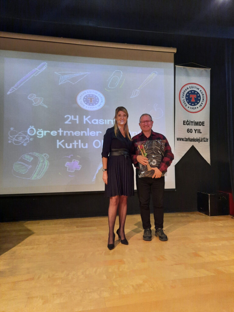 Özel Tarhan İlkokulu ve Ortaokulu öğretmenleri için hazırlanan 24 Kasım Öğretmenler Günü töreninde uzun yıllar emeği geçen öğretmenlerimiz Okul Müdürümüz Sayın Selda Arın’ın elinden plaketlerini alırken tüm öğretmenlerimiz hediyeleriyle birlikte okul aile birliğimizin hazırladığı yemeğe katıldı. Tüm öğretmenlerimizin bir kez daha öğretmenler gününü kutlarız.